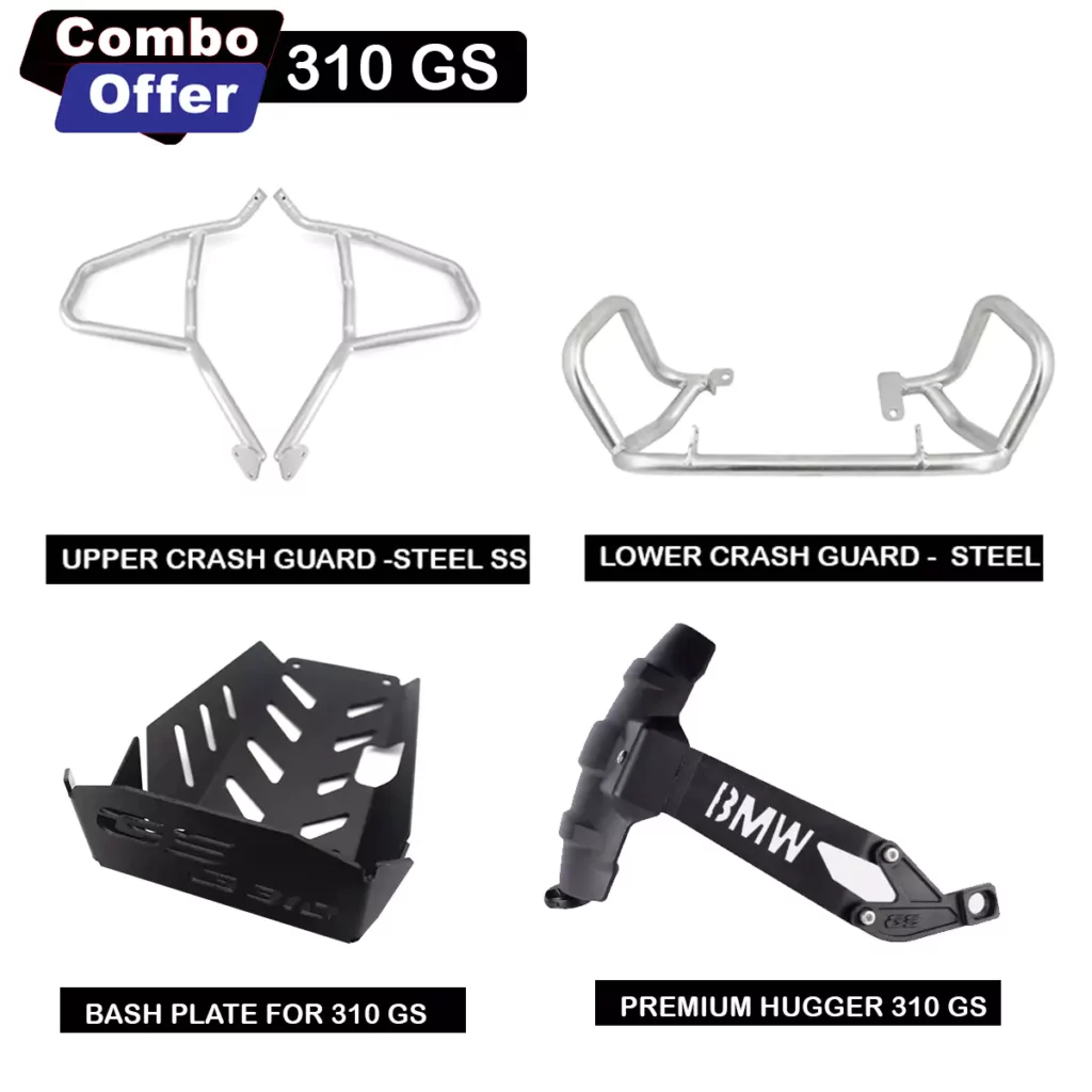 BMW G310GS Combo-Upper Crash Guard Stainless Steel+Lower Crash Guard Stainless Steel+Tyre Hugger+Bashplate