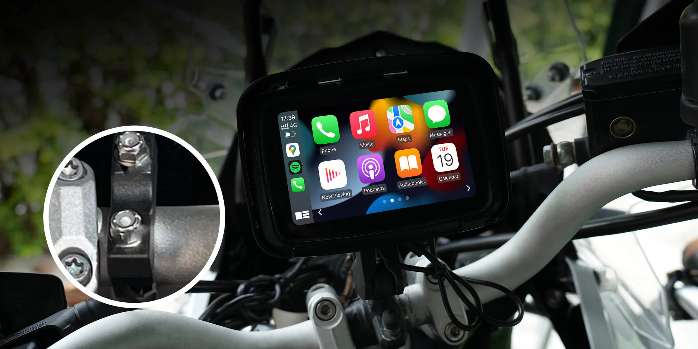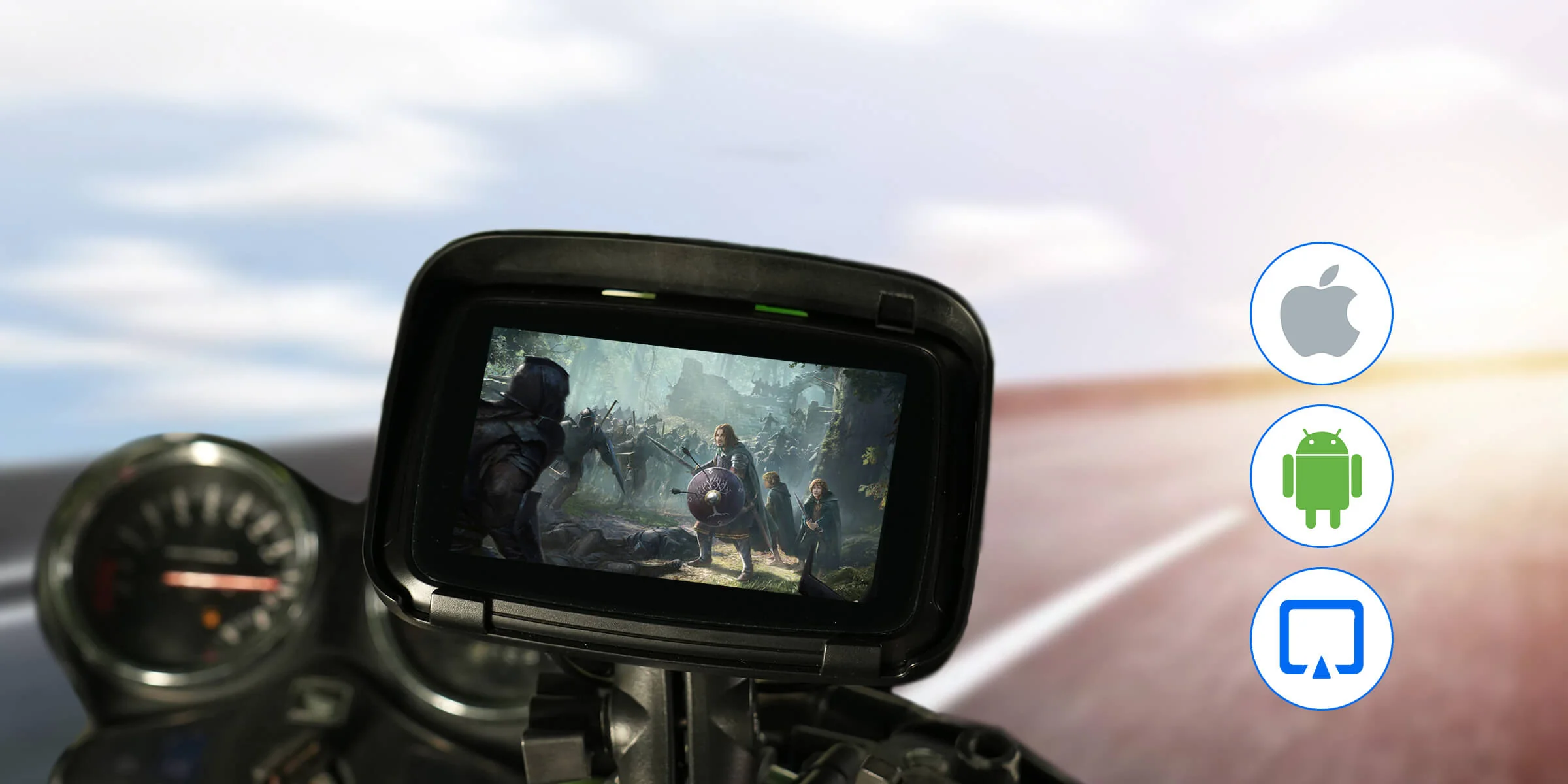 Device – Touchscreen IPS display for motorcycle with wireless Apple