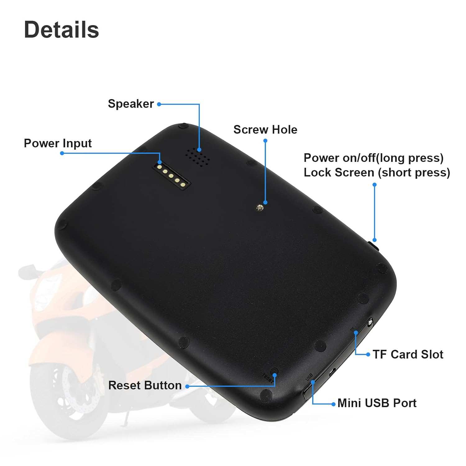 Device display, which also brightens up the look of any motorcycle.Package contents