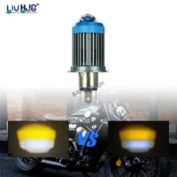 HJG H4 Lens Headlight Bulb with Cooling Fan New Model White Yellow LED Headlight Bulb H4 For All Motorcycles (Low and High Beam Bulbs (White/Yellow) White Yellow 40W Lens) LIU HJG H4 Lens Headlight with Cooling Fan - Type H4