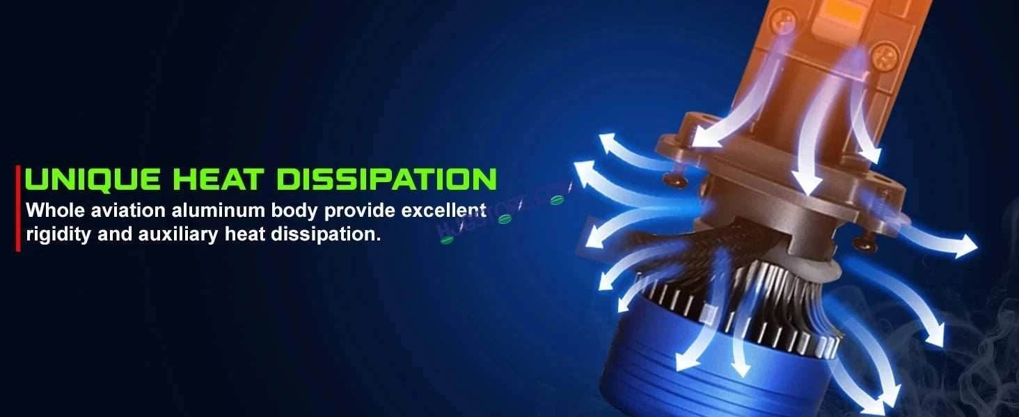 * HJG Led Headlight uses a wide thermal control system to keep the lights cool.