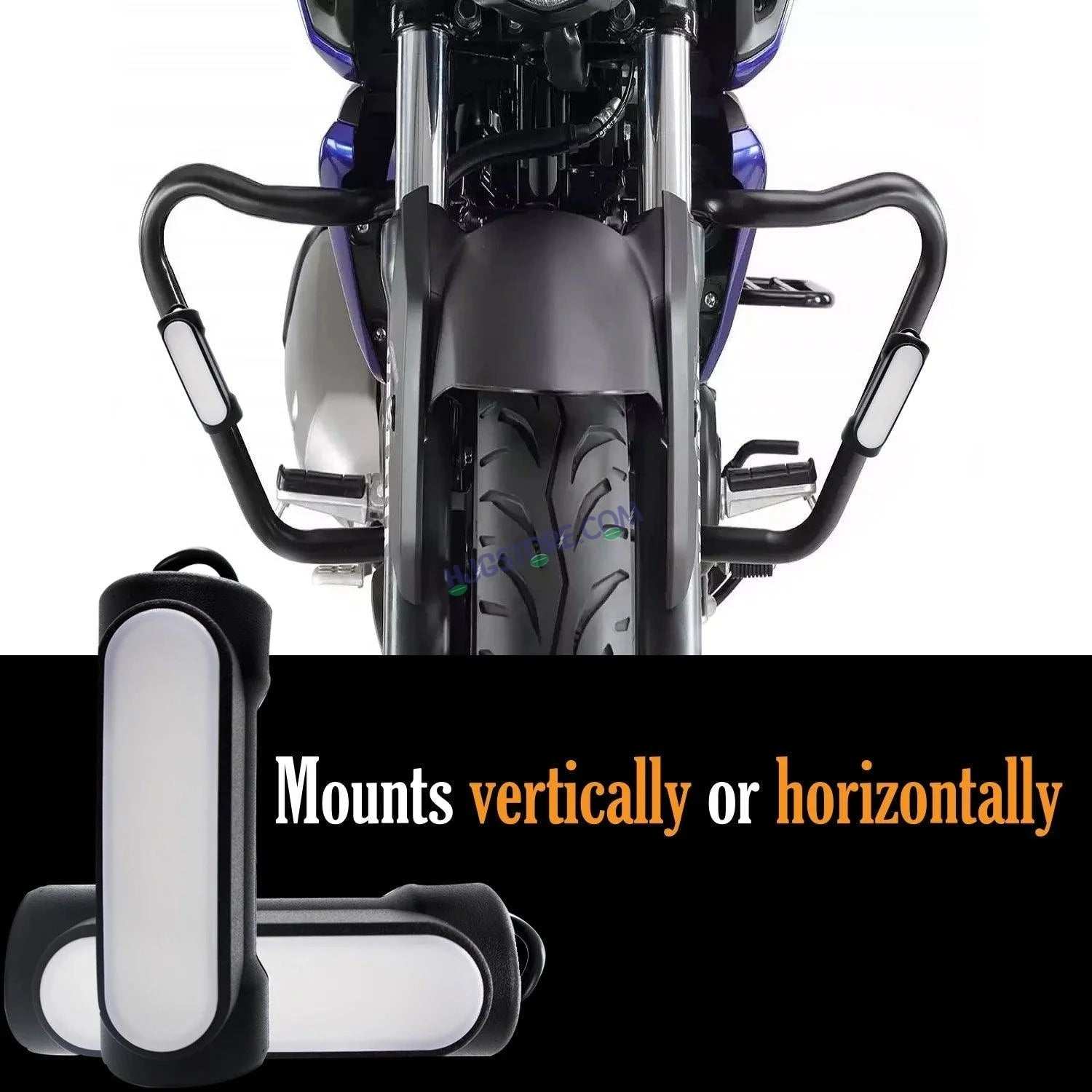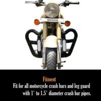 HJG New Leg Guard LED DRL Turn Signal Hazard Crash Bar Lights exclusively available at HJG Motorcycles. These are aluminum based heavy quality crash bar lights which can also be used as turn signal indicators. Main purpose of these lights is to be used as hazard lights. These are very bright and can be seen from far distance in the rearview mirror of any vehicle at front. Also, when you give indicators it blink like matrix and. Gives very good look. HJG crash Bar Lights fits all OEM leg guards with diameter of 1 to 1.5 inches. These are very easy to install and looks really good on the bike.