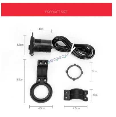 Specifications: 1. Cable length: about 1.2 m/ 3.94ft 2. Input interface: 12v 3. Output interface: USB 5V 1.5A Fast Charging 4. Suitable type: Motorcycle / electric motorcycles universal 5. Wiring method: connect the red wire with “+”, the black wire with “-”