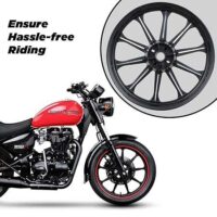 - 19″ FRONT & 18″ REAR ALLOY WHEEL: Say goodbye to old or stock rims and bring home the 19″ Front & 18″ Rear Tire Alloy Wheel Double Disk that is sturdy and durable. It will uplift the charm, persona, and strength of your riding machine, which will make all heads turn on the road.