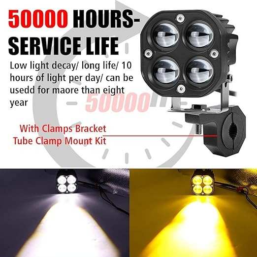 LIU HJG 4X4 CREE Original (2 in 1) Fog Light 120W (White + Yellow) with Kit 4 LED Laser Spotlight For Bike/Car/Thar/Jeep (Pair) White/Yellow