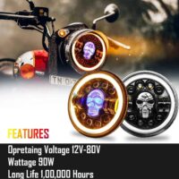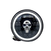 HJG 7 Inch Harley Skull Round Led Headlight Fits in Royal Enfield All Models, Mahindra Thar (12V-80V 75w)