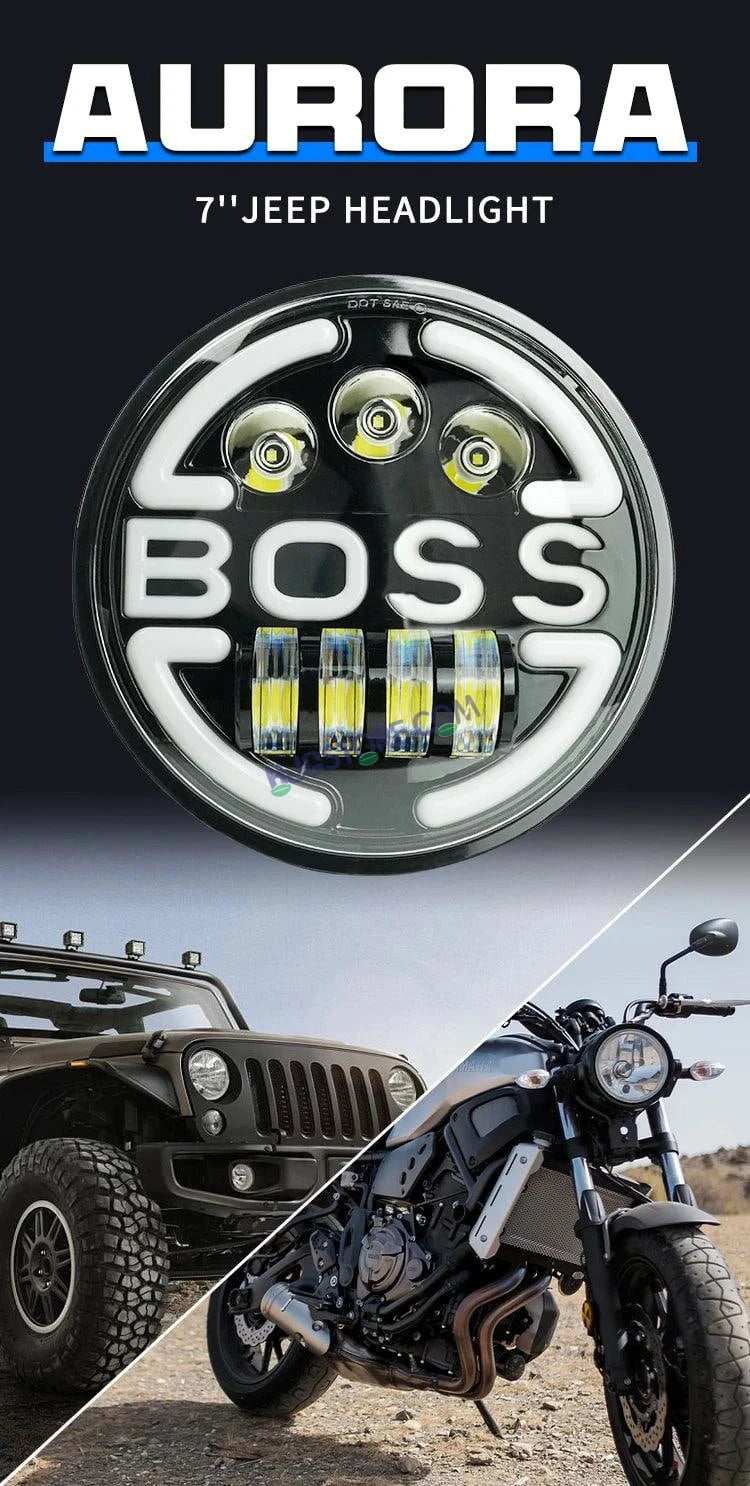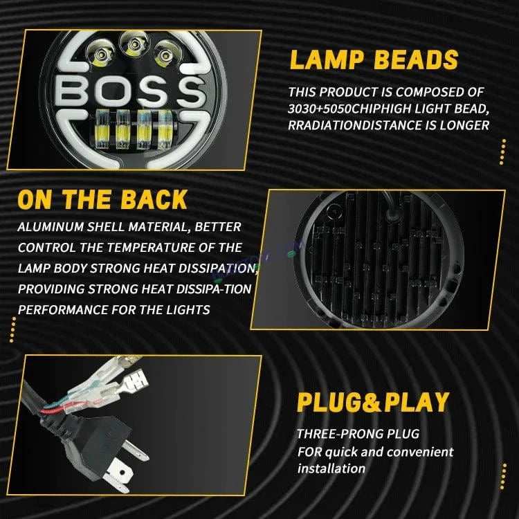 HJG 7 Inch Led Headlight Assembly Halo Lights Dual Color Yellow White 7 Inch Round Motorcycle Lights For Jeeps Universal Car Compatible with Royal Enfield, Jeep & Harley Davidson BOSS