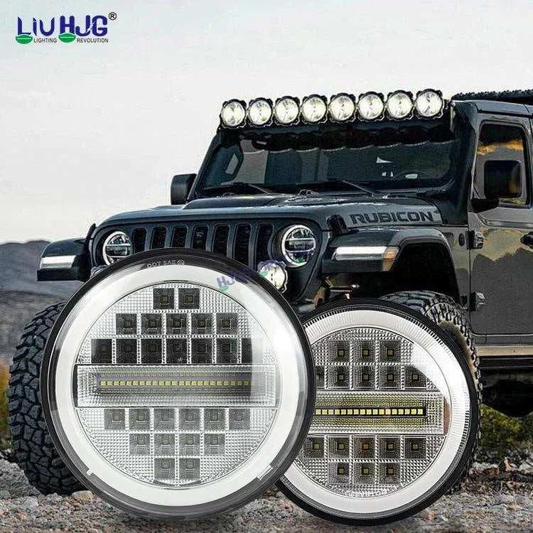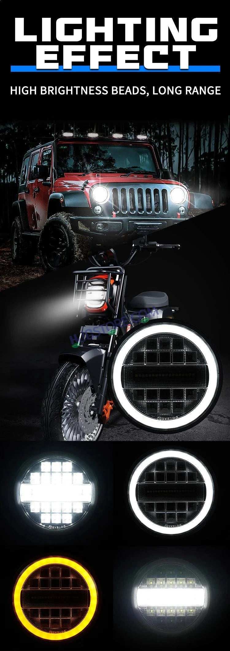 HJG 7 Inch Led Headlight Assembly Halo Lights Dual Color Yellow White 7 Inch Round Motorcycle Lights For Jeeps Universal Car Compatible with Royal Enfield, Jeep & Harley Davidson Diamond