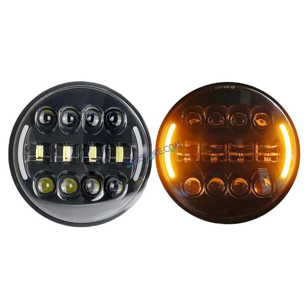 HJG 7 Inch Led Headlight Assembly Halo Lights Dual Color Yellow White 7 Inch Round Motorcycle Lights For Jeeps Universal Car Compatible with Royal Enfield, Jeep & Harley Davidson Tuff Plus New 231046