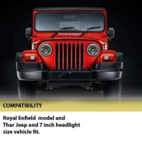 - Vehicle compatibility: Royal Enfield classic 350, 500 cc, classic chrome, Electra, 350, 500, standard 350, 500 cc, thar jeep and 7 inch headlight size vehicle fit.