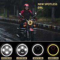 HJG 7 Inch LED Headlight with Spotless and Bright DRL Fits in Royal Enfield (All Model) And Mahindra Thar (12V-80V DC 75w)