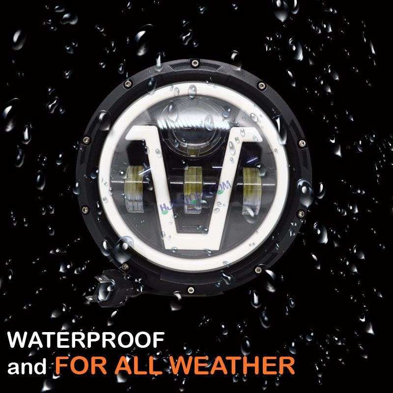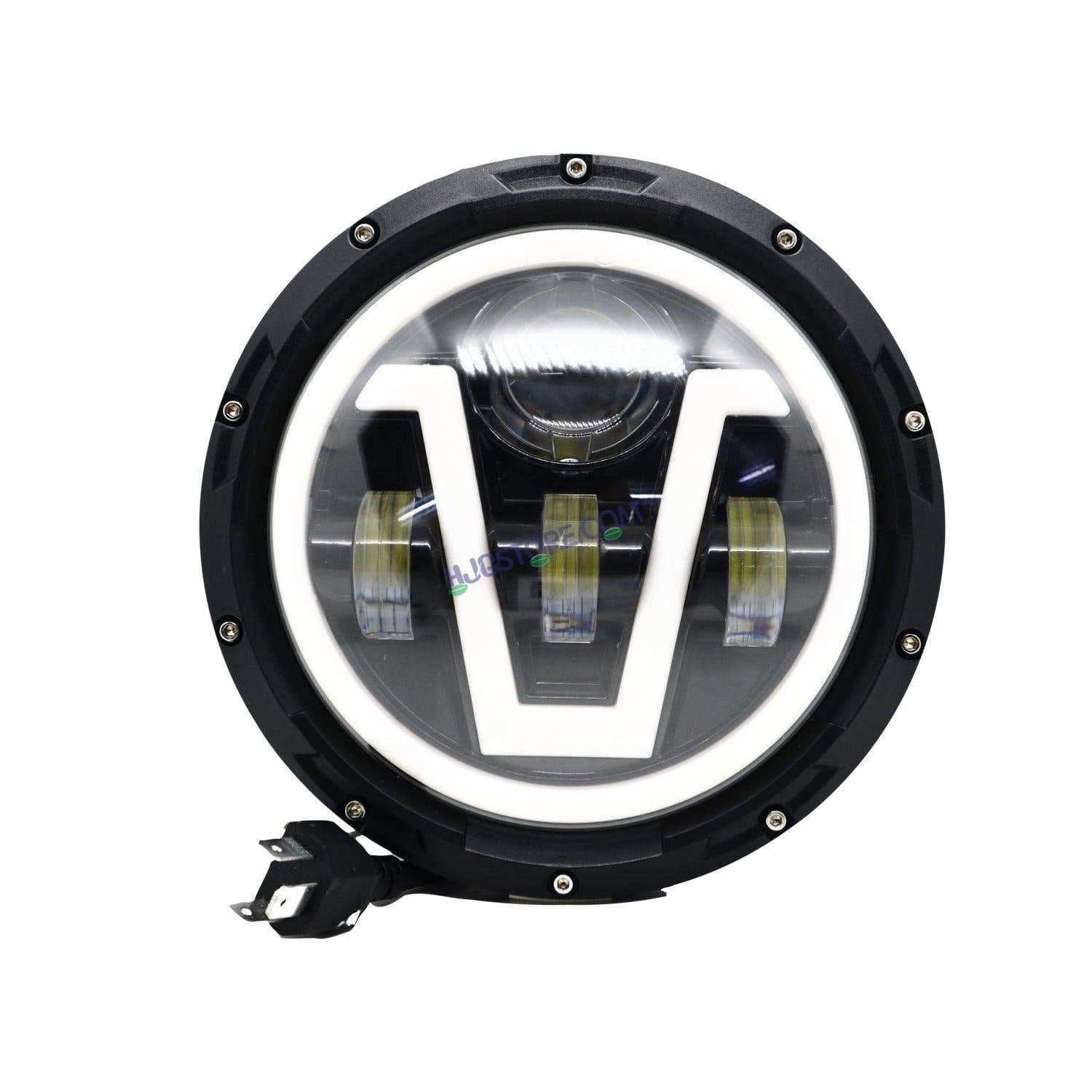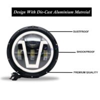HJG 7 Inch Round Harley Led Headlight Compatible with Jeep Thar, Harley Davidson & Royal Enfield (DC12-80V, 90W)