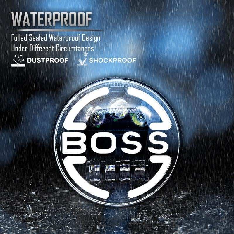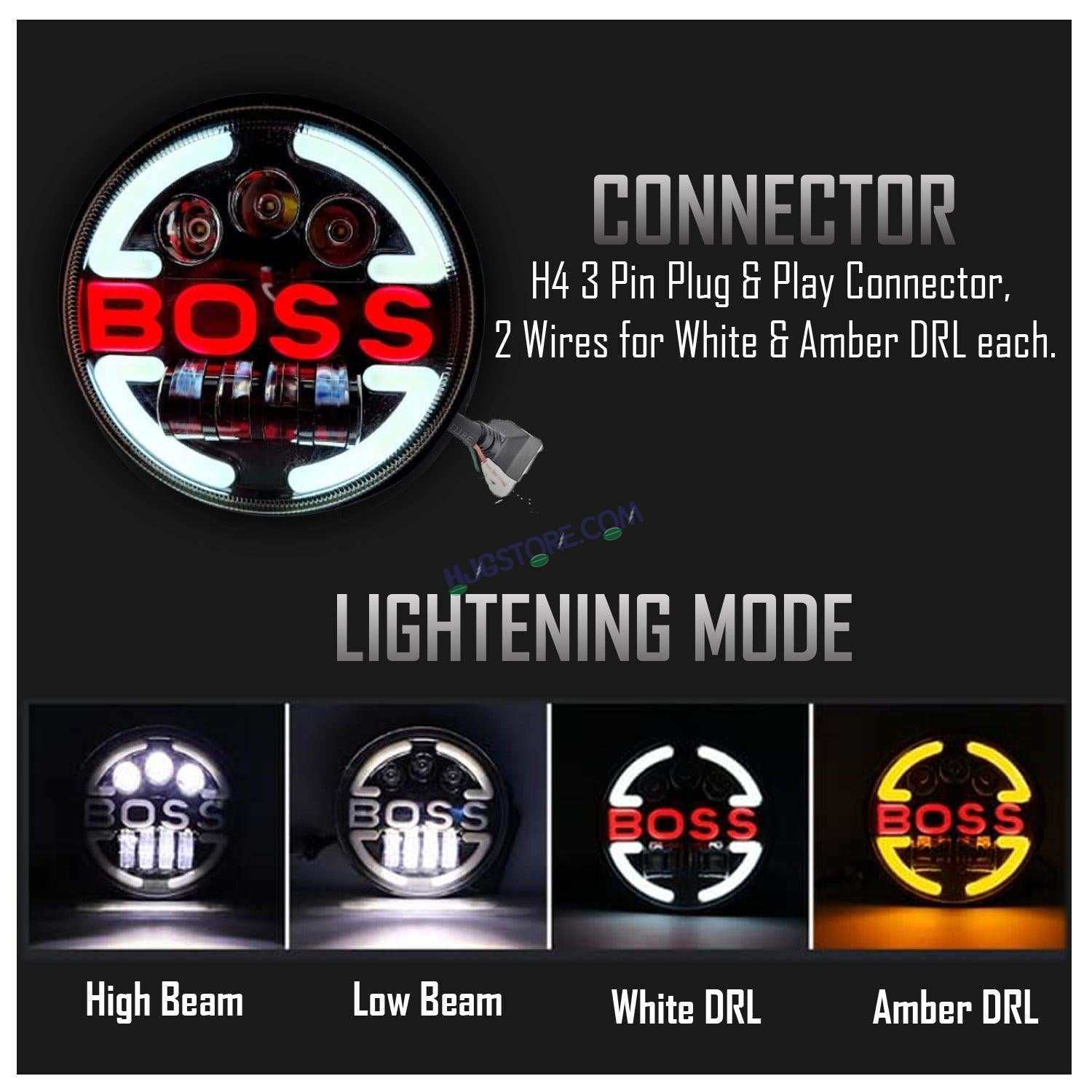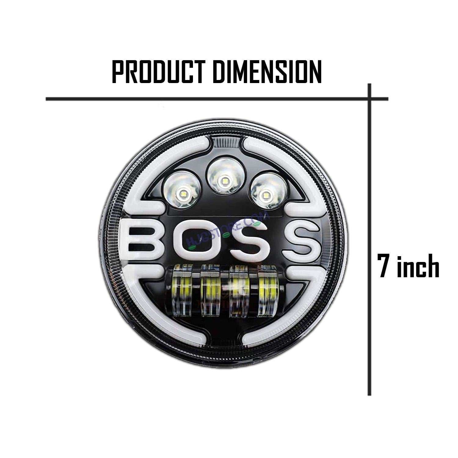 HJG 7 Inch Round Headlight Compatible with Royal Enfield, Jeep & Harley Davidson (Harley Boss Headlight)
