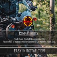 • 7 Inch Round LED Headlight is a must-have for Royal Enfield Lovers to enjoy ultra-bright light for excellent visibility over all kinds of road and terrains. No more fuss of clear visibility even in the darkest route.