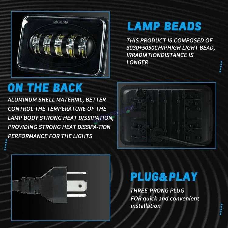 HJG Lens Headlight Assembly Square 12v 45w 4x6" 5x7" Inch Led Headlights For Jeep, Splendor Headlight Assembly HJG 231214