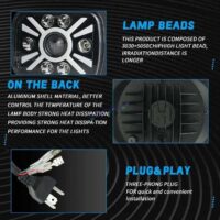 HJG X Shape Splendor Lens Headlight Assembly Square 12v 45w 4x6" 5x7" Inch Led Headlights For Jeep, Splendor Headlight Assembly HJG 231200